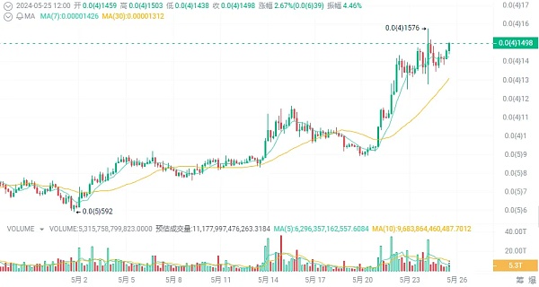 佩佩(PEPE)的价格在过去一周内上涨了38.49%。在过去一个月内,涨幅更是达到112.98%。看看过去六个月,其增幅更是惊人,达到1231.79%。目前,PEPE的价格在0.00000777美元到0.00001107美元之间,未来可能会上涨至0.00001298美元,但如果下跌,可能会跌至0.00000638美元。