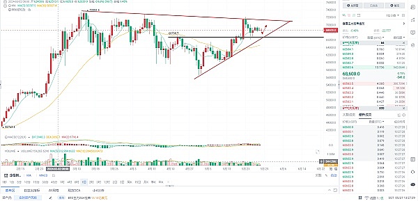 周末比特币价格集中在 69,000这个关键水平位附近徘徊,表现的有点强劲,一度突破 69,500 美元,随后进入盘整阶段,尽管市场看涨情绪比较强势,但仍然受到熟悉的阻力区限制,老王认为高位盘整可能即将结束,比特币喜欢在暴风雨来临之前在其历史高点附近徘徊,可以把它想象成暴风雨前的宁静。历史表明,长期盘整通常先于爆炸性走势。因此,虽然我们可能会看到更多的横向走势,但不要被误导了,这个阶段是致命一击前的收尾阶段。系好安全带,因为当它上涨时,它会迅速而猛烈,大周期依旧是看好上涨的,遗憾的是本周收盘价没有收在69000上方,这可能会让比特币再次会进入一个调整期,但老王相信距离盘整期结束越来越近了,日内交易关注68000和 69800 这个区间,认为先下后上的一个走势,操作建议,68000-67500做多,69500-69900做空,利润大家自行把握,晚上8点30直播间不见不散