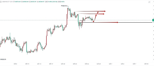 操作建议68000-67500附近布局多单,目标看向70200-70800附近,风控67000附近
