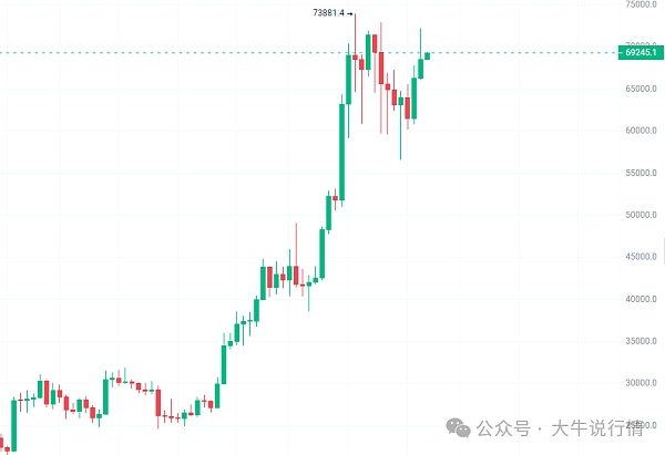 目前的行情其实并不复杂,周末行情下跌过程中老美比特币现货ETF净流入了1.08亿刀,技术结构上日线收盘也没跌破头肩底形态颈线67200关键支撑,更别说66000关键支撑了。所以这个位置买盘是比较强劲的,没必要天天狼来了,狼没有来也不会来,大盘下方空间有限。反而这种回调是为后续拉盘做准备的,耐心等待行情回归就好了。行情不出现无法预测黑天鹅事件,难有大跌,咱们拿好手上现货筹码就好,不要慌不要慌。