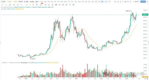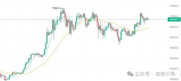 截至5月26日的周末收盘,BTC 一直徘徊在关键价位附近,周末交易价格稳定在69,000美元左右。