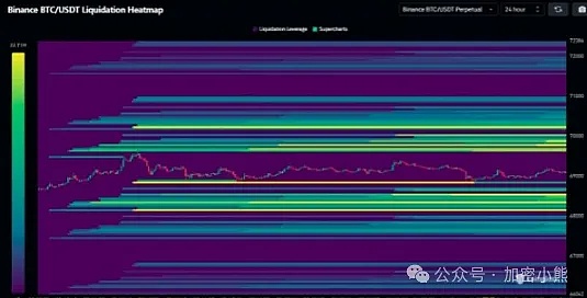 附带的图表展示了在全球最大交易所币安上,BTC/USDT 永续掉期对的流动性集中情况。