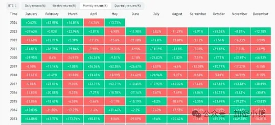 根据监控资源 CoinGlass 的数据,如果发生这种情况,5 月份月度收盘价仍可能以红色收盘,与前三年的情况一致。
