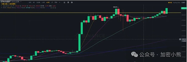 以太坊经过三天的高位盘整后,迎来了三连阳的强劲走势,目前势头非常强劲,日内突破4000点几乎是板上钉钉。近期需要重点关注的是4093这一关键关口,这将成为以太坊的重要里程碑。日内操作建议,重点关注回撤至3880位置的支撑情况。