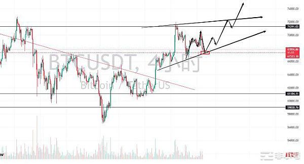 下方关注一下67200-66700 这个区间,小级别这个位置支撑是一个不错的Buy位置 ,看上升楔形突破!