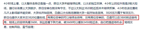 前面文章预测大饼以太会有回调,回调也是给了,但是只有大饼给了,以太没有给到很大的回调力度,反而还走出拉升,前面大饼回调的点位在66156位置,空单是成功获利,以太在下跌的过程中还给到了一波独立拉升,最后才走出下跌,那以太前面的布局3820附近的空应该是保本离场了,近期的行情是以太比较强势,大饼走势偏震荡为主,后市行情是还会去走回调还是回调结束要开始拉升了?