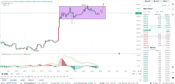 贝莱德更新了其现货以太坊 ETF 的 S-1 表格,这对整个市场来说是一个好兆头,表明发行人和美国证券交易委员会正在努力推出 ETF,在贝莱德更新了推出所需的关键文件后,美国现货以太坊交易所交易基金(ETF)有“合法可能性”在 6 月底前推出,以太坊从大盘的走势去看依旧是一个多头趋势,走势比以太坊稍微强一点,今天下方关注3750-3720,有机会下去就是一个布局中长线的机会,目标依旧是4000-4100