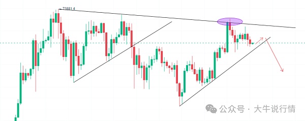 今天要打预防针了,比特币昨天的整个表现是次要的,但这一周内出现了两次这样的事就有点不正常了,又恰好发生在同样的位置,又在这样的一个时间节点上。对于未来大市环境我还是整体看好,我这指的是中期环境,但对于当下的短期环境有必要多加小心点,尤其是玩合约的才要小心了,前面几天刚把空军爆完,趋势线一旦下破,那么将会回踩6万,现在做空反而是空挡期,主力向下的压力不大。