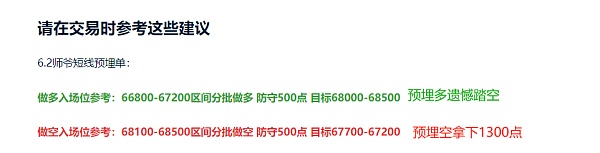 昨日师爷文章中在66800-67200区间预埋做多,行情在凌晨最低跌至67296附近。随后一路反弹最高涨至68480,但因为入场点位仅仅只间隔96个点的差距,导致多单踏空未能进场。