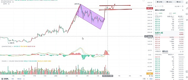 以太坊日线级别图来看依旧是区域一个上升的走势,行情进行到一个末端了,认为后期没有跌破3700这个关口,那么可以逢低做多,下方关注3750-3720如果能下去可以去布局多单,想做空的币友可以在3850附近分批做空,把握50个点的利润,底部3750在上周老王布局中长线的币友可以持续持有