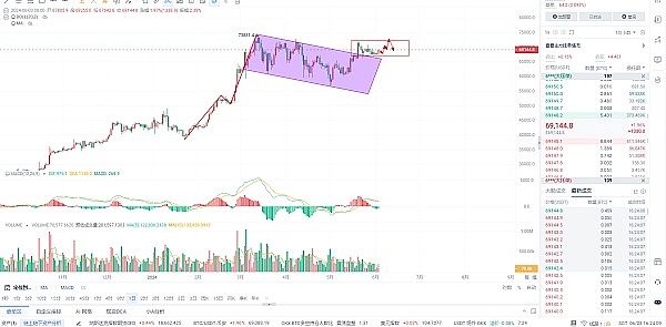 6月3下午:比特币高位震仓:坚定自己的思路:不要被轻易洗下车比特币在 70,000 美元的心理关口上方面临阻力,但积极的信号是多头尚未向空头让出太多空间。上周比特币小幅下跌近 1%,过去几天比特币的区间波动并未妨碍对现货比特币交易所交易基金的投资,自 5 月 14 日以来,比特币 ETF 的净流入资金超过 21 亿美元。这表明投资者正在积累比特币,期待突破上行,比特币也是持续在67000-69000区间震荡,自从比特币突破历史新高之后一直处于一个回调的动作走出了一个下行趋势,目前从K线图去看的话大盘日线级别走出了一个下降旗形,价格突破旗型上方之后进行调整阶段,如果后期没有跌破旗型趋势线,再配合成交量的话有概率会进行强势拉升,依旧是老王说的那句话,逢低看多,老王上周的多单一直都没有出掉,坚定看7万上方,行情越小距离单边行情也就越近了,今天日内操作高抛低吸,先上去那么可以在70500-71000区间做一波回调,目标1500个点,如果有机会回调到68000附近分批做多,目标依旧是老王前几天说的点位70000-71000,认为先上的概率比较大