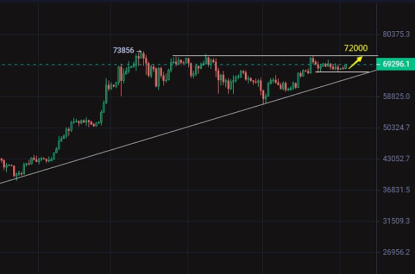 五月已经成为过去式,再多的高光,再好的成绩也只能停留在过去;回顾五月,我们完美预测了走势,从月初的回撤再到中旬的反弹,尽在掌握,其中中旬我们围绕61000关口一路多至68000,下旬企稳68000后顺利测试72000!整个五月,从短线到中线,基本符合我们所有的预期;那么已经都来的六月,又将迎来怎样的走势呢,是延续上涨突破新高,还是在72000继续承压回落?以下是我的个人观点,仅供大家参考。