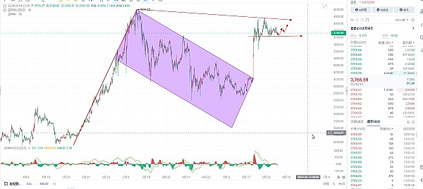 以太坊没有什么好说的,依旧是老话,下方关注3750-3720可以分批多单进场,中长线布局依旧看4000-4100,昨天晚间在直播间给到的以太坊多单目前处于获利当中,包括昨天发布的文章以太坊3850做空跟上的币友获得小小50个点的收益