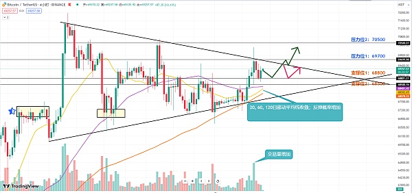 做多入场位参考:68500-68800区间分批做多 防守500点 目标69700-70500