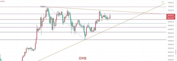 做多入场点参考68500到68700区间,止损400点,出场点参考69500和70500两个位置附近,