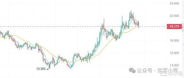 主升浪尚未显现,但趋势明显有利于多军,持有者具备优势。我上车的价格是19.2,中线的第一个目标区间是2528,第二个目标是3537。只要6小时K线的实体不跌破17.8的支撑位,并且价格保持在19.9的趋势线上方,我依然坚信OMNI会迅速拉盘。