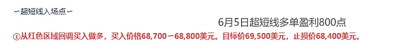 ② 在70,000〜69,800美元附近的回调买入做多,止损69,600美元,目标价70,500美元。