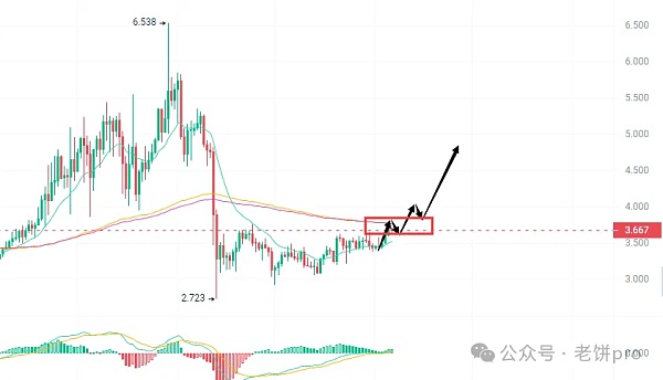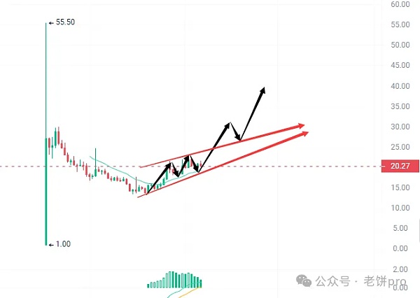 走势上 早期的抛压已经消化的差不多了,目前日线级别向上走一个上升楔形 ,一旦突破上方空间打开 利润还是比较不错的,现价进的话 补仓放在17.5u 跌破13离场