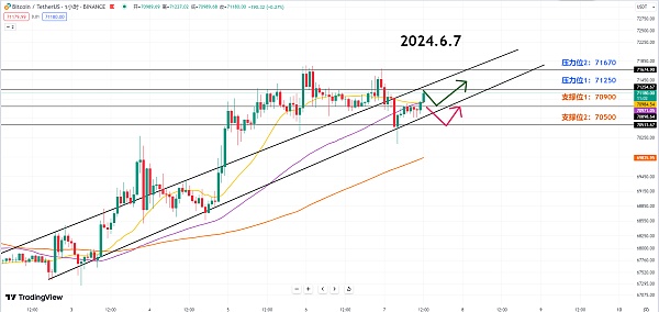 做空入场位参考:71300-71700区间分批做空 防守500点 目标70900-70500