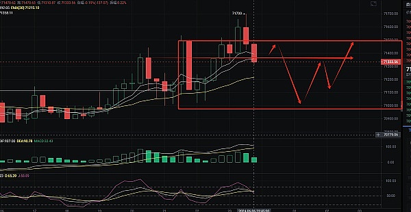 71500附近空单进场 止损72100 补仓点位71800 目标71000-70800附近