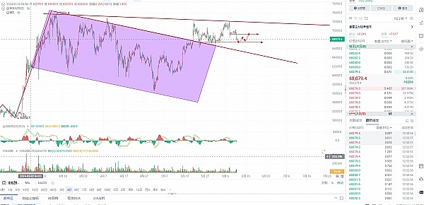 各位币友们大家好,假期结束迎来了美好富裕新的一天,希望在新的一周大家都能赚取不错的收益,价格冲高到72000之后受到非农数据影响,走了一波下跌趋势跌至最低点位67800附近,大家需要注意的是,监控中央银行的货币政策,例如利率调整,这些政策可能会影响加密货币的估值。承认杠杆交易存在风险,因为可能出现重大损失和清算。关注现货比特币 ETF 提案的进展,这可能会刺激价格复苏。尽管市场状况普遍如此,但比特币价格反弹的潜在催化剂仍然存在。美联储预计将很快宣布降息,此前加拿大央行和欧洲央行 (ECB) 也采取了类似举措,七国集团主要央行的这些货币政策转变可能会为比特币等加密货币创造巨大的增长机会,综上所述,比特币近期的价格下跌对整个加密货币市场产生了连锁反应,导致山寨币遭受重大损失,大量清算。然而,即将出台的货币政策变化和现货比特币 ETF 的推出可能会为价格复苏提供支持,日内比特币价格关注上方69300以及70000这个区间,如果没有突破站稳69000-69500那么可以在这个区间去把握回调,目标67500-67200,67000附近做多,目标1500-2000个点。
