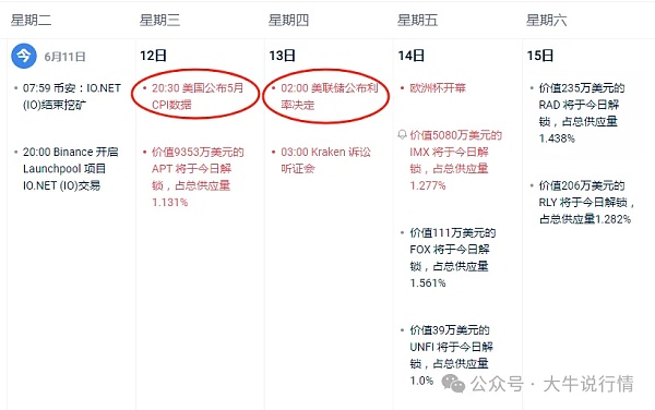 本周12号CPI,13号凌晨利率决议,这两个消息面要注意对短期行情带来的波动。自从比特币现货ETF通过之后,咱们币圈也要更多的去关注老美那边的一些重要的经济数据,华尔街的镰刀让我们散户要更加谨慎的面对这个强庄市场。不管短期如何波动,长期的看法,牛哥依然是不变的,之前的文章也多次的提到,就不赘述了,近期还是多去关注短线的思路。