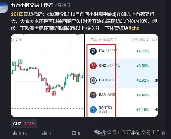 我们是在0.112附近进场的现货,刚刚下跌这个chz也是没怎么跌,目前也是率先反弹,下月还有奥运会,这个板块还是有操作空间的