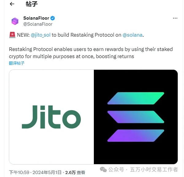 Solana 生态系统的最新发展无疑在围绕 SOL 引发市场热议方面发挥了重要作用。据专注于 Solana 的新闻账户 SolanaFloor 报道,Jito 正在Solana上构建一个重新质押协议