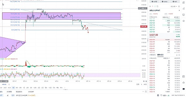 以太坊在今天凌晨下跌至最低点位3420附近进行了一个反弹突破3500压力位之后开始有所调整上行的状态。日线级别以一根实体阴线结尾,从日线级别去看整体处于一个空头趋势,四小时级别K线走势形态有反弹的迹象,上方压力关注黄金分割线3560这个位置,认为日内会先反弹,3550-3580区间空单进场,风控50个点,目标3430-3370