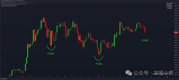 过去两次FOMC会议后,比特币价格都出现了强劲反弹,这与美联储委员会采取的鸽派立场有关。开玩笑地说,比特币在这段震荡市场中的底部支撑实际上是美联储。然而,有句俗语说“事不过三”,连续两次有效的规律往往会在第三次失效。