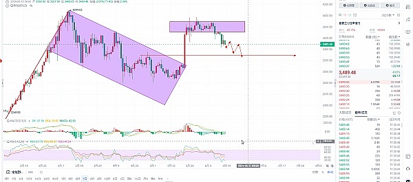 以太坊没有什么好说的,反弹做空即可,整体比较偏向弱势,下方依旧还有空间,反弹3550附近空单进场,目标3450,止损带35个点,老王自己昨天3638的空依旧在持有当中,包括比特币的空单,如果空单没有做进,可以在3420挂一个反弹看50个点