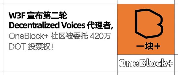 W3F 宣布第二轮 Decentralized Voices 代理者, OneBlock+ 被委托 420 万 DOT 投票权