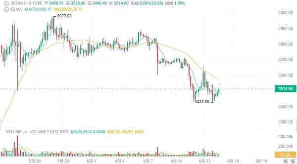 上一次 ETH 价格在 4 月份跌破 3,500 美元,导致 5 月 2 日跌至 2,814 美元的低点,跌幅达 25%。所有人都在关注 SEC 主席批准现货以太坊 ETF 上线交易的进度。这可能会注入大量资本流入,类似于现货比特币 ETF 获批后的情景。