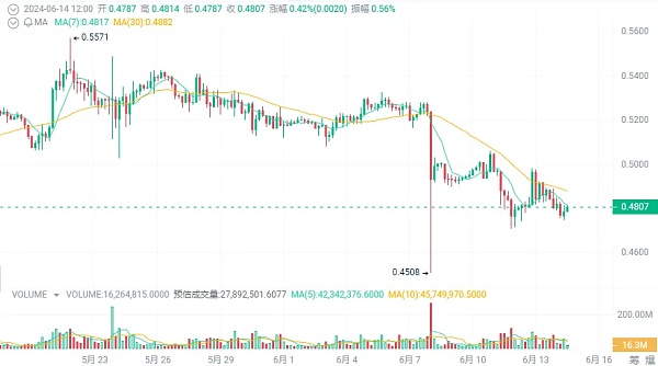 XRP价格在过去 24 小时内下跌了 1.43%,目前交易价格为 0.4806 美元。该代币的 24 小时最低和最高价格分别为 0.476 美元和 0.489 美元。XRP 的周线图显示出修正的迹象,截至发稿时下跌了 8.39%。