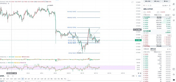 目前,DOGE 交易价格低于 0.145,略高于关键的 0.140大关。最近的活动表明,它已跌破 50% 斐波那契回撤位,从 0.1337 美元的低点开始上涨至 0.1505 美元的高点。跌破 0.1425 美元附近的看涨趋势线,凸显了交易员的看跌情绪增强。
