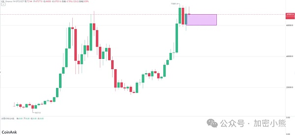 从比特币的月线来看,牛市的趋势非常明显。目前它只是在月线图上横盘整理,在接近新高的位置进行震荡,清理获利盘,为下一波上涨夯实基础。这种情况再正常不过了。正如之前所说的,回调最多到6万美元,这已经是极限了,而且未必会真的达到这个点位。