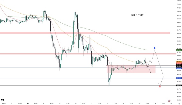 从67,400〜67,200美元卖出做空↓