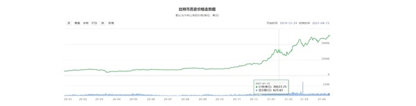 上图可以看出,2021年初到3月中旬,原油下跌10%,黄金和白银分别上涨了44%和72%,但比特币再次期间却上涨了754%,收益惊人,远远把其他投资品种甩在了身后。