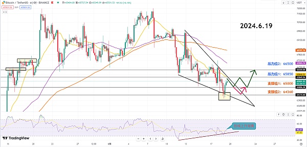 做多入场位参考:64000-64400区间分批做多 防守500点 目标65000-65800