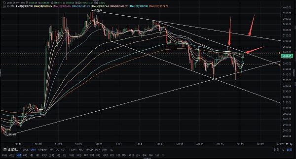 以太坊这波表现的更为强势,早间由于美国API数据利好,加上日本那边出口贸易商品账单都是上涨的依据,此轮上涨还会持续到3620-3640区间,到下午2点还会有英国那边的CPI月率和年率,可以重点关注一下,还有就是今凌晨之前如果能够突破前高3650-3670这个区间,那么大概率还是会涨到3750-3730这个位置,因为当前4小时线级别MACD中低位金叉有意形成,第一根柱子在0轴上方放量,如若成功,那么必然会上升到趋势线顶部位置,反之不破则可以空!