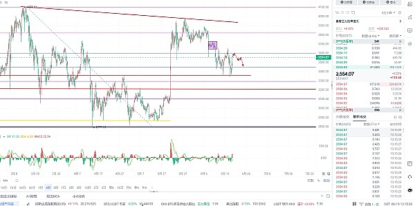 操作建议:不破3580空单进场,目标第一支撑位,跌破看第二支撑:风控35个点:如果止损,那么就在3650附近再去挂一个空单
