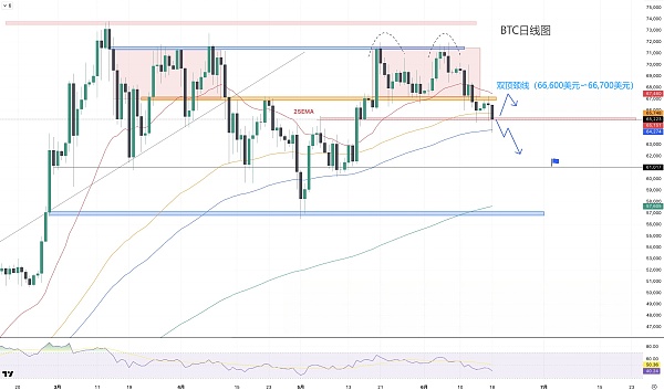 止盈位:65,300美元~65,000美元 止损位:66,500美元