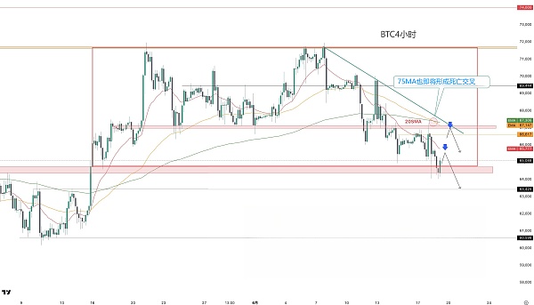 主要做空是在币价反弹20日均线(20SMA)或75日均线(75SMA)附近,如果实体现价跌破64,000美元的支撑位,那么金瑞认为比特币则将会进入全面下跌。