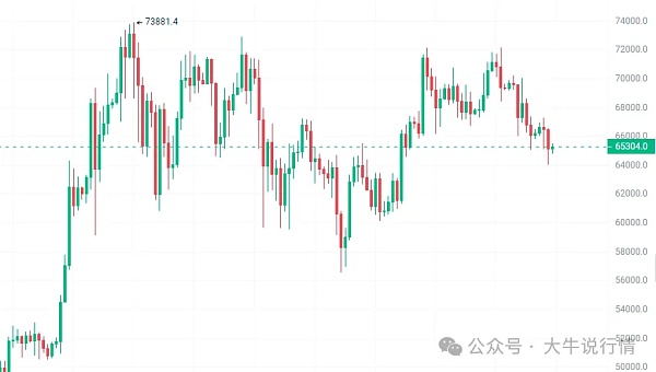 行情目前就是偏震荡修复,如果想要走强,必须放量突破67600,泰达同时也在波场链再次增发了10亿油,不排除有机构鲸鱼入场拉盘的可能性,如果主力选择拉盘,带来赚钱效应,才能够引起共振。后续还得注意下减半之后的走势,2016年减半后出现了30%的回撤,2020年减半后出现了20%以上的回撤,减半后挖矿成本增加,矿工也会选择性抛售。目前其实不管从小时级别、十五分钟级别都走到了波浪理论的第五浪结束,往往第五浪结束后迎来的可能是反转或反弹。