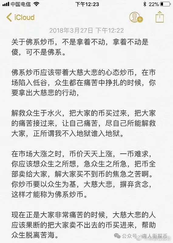 至于啥是佛系持币,今天在网上也看到了一篇非常好的诠释,附图一张与君共勉。