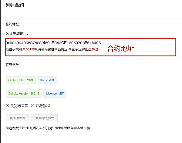 所有信息确认无误后,点击创建合约,小狐狸钱包确认并支付一些bnb费用后即可