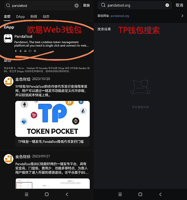 欧易Web3钱包:在【发现】输入pandatool,就能看到PandaTool的DAPP,点击进入就能连接钱包,Bitget钱包也是一样的操作
