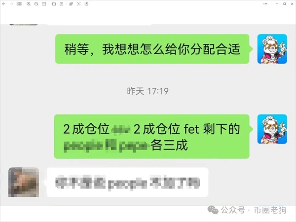 下跌后反弹最猛的三个币种是将要合并的三个AI概念的币种,FET AGIX OCEAN,这三个币种即将合并为ASI,ASI也大概率会成为牛市下半场的一匹黑马,昨天会员想加仓问我怎么分配仓位的时候,老狗也推荐了目前持有币种之一FET。