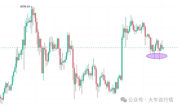 以太的走势明显要比大饼要强势一些,分析一下盘面的走势就可以看出来。以太两次插针跌破3500美金,但是很快又收了上来,最终没有有效的跌破3500美金。第一次下跌来到下方支撑位附近出现了一个十字启明星,接着回调再一次来到支撑位附近,出现了一个锤子线,昨天的阳线再一次组成一个十字启明星,在同一支撑位两次出现十字启明星,这就说明下方的支撑还是很强的。