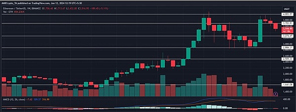 直到 5 月中旬,ETH 一直保持这一支撑 位。值得注意的是,在 ETH交易所交易基金(ETF) 获得 批准后,该代币在 5 月下旬出现了大幅上涨。这推动其价格突破 3,703 美元。然而,多头没有足够的力量将价格推至峰值阻力位。